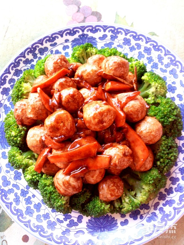 朋友自己做的鱼丸送给我一些,味道很好,我再加加工,让它更美味。 主料 鱼丸500克 西兰花80克 辅料 胡萝卜20克 玉米油10毫升 蚝油10毫升 大蒜10克 姜2克 油焖鱼丸的做法 1.准备食材:将西兰花用水焯熟。 2.热锅放油,放入姜和蒜爆出香味。 3.放入鱼丸,炒至鱼丸变成金黄色。 4.加入蚝油,再加入少许水焖一会。 5.放入胡萝卜翻炒至汤汁浓稠一些时即可。 6.将焯熟的西兰花摆一圈,将鱼丸倒入盘中即可,色泽艳丽,营养美味。 烹饪技巧 鱼丸炒至金黄口感更好。