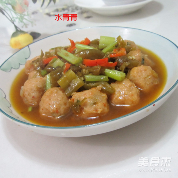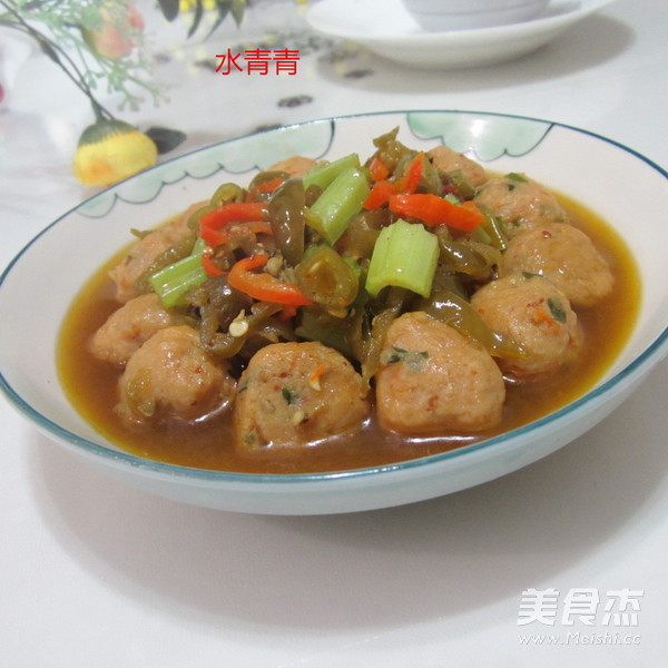 丸子是家乡经常烹制的传统食品,常吃不腻。因为它味道鲜美,可作点心配料,又可作汤,是人们爱吃的美味佳肴,蒸,煮,做汤,香炸随你怎样吃都吃不腻。一天做好多的丸子,剩下了一些,加了点酸辣椒,放了点鱼香粉提香,酸辣丸子即成。 主料 肉丸300克 酸辣椒100克 辅料 油10克 鸡精2克 鱼香粉5克 鱼香酸辣丸子的做法 1.食材 2.酸辣椒切碎 3.先炒酸辣椒 4.炒香 5.放进丸子 6.放进芹菜炒匀 7.放清水 8.煮二分钟,撒上鱼香粉,鸡精 9.即成 烹饪技巧 不太吃油腻的蒸也行