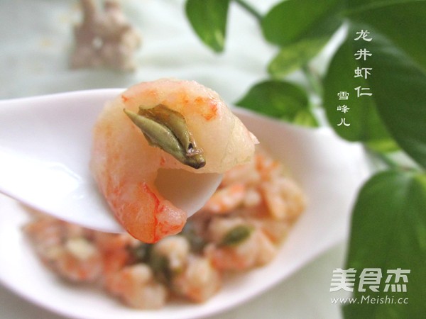 7.放入虾仁和龙井茶炒匀,加盐调味即可