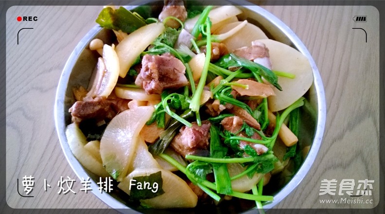 7.加入萝卜改大火炆煮5分钟后,豆粉对凉水勾芡