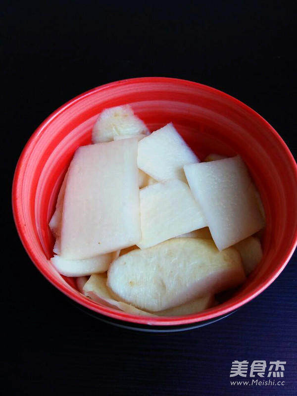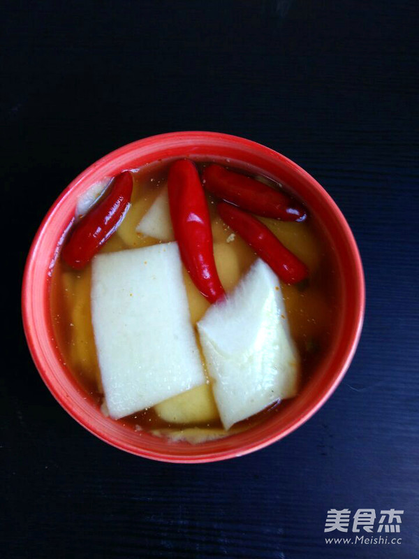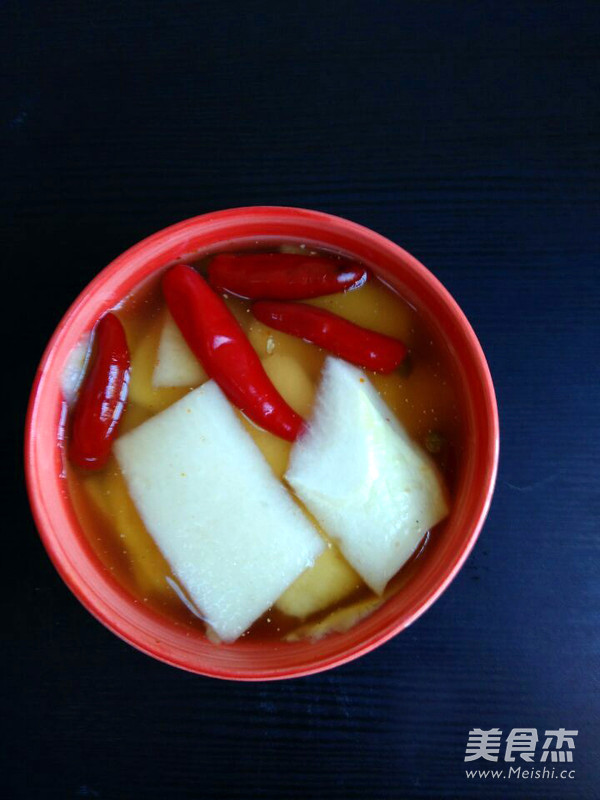 6.将白萝卜皮沥干水分,放进酸水里泡2个小时。