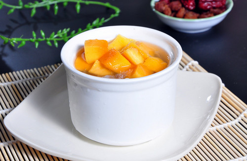 原料:银耳15克,木瓜(中等大,最好是自然熏熟、1只,北杏10克,南杏12克,冰糖适量。