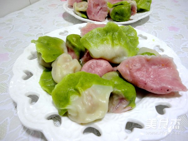 老公同事给拿来了红色火龙果,用它榨汁包了红色饺子,用菠菜汁做了翡翠饺子,颜色漂亮。