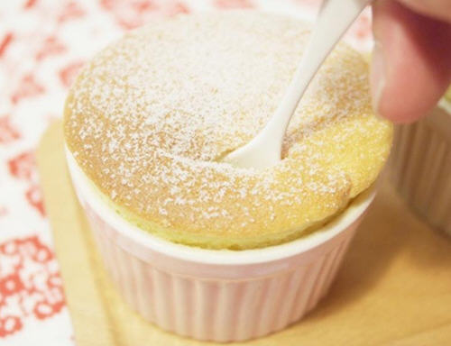 舒芙蕾刚出炉时颇为美丽壮观,但一降温后马上就会收缩塌陷,所以一定要分秒必争地食光。