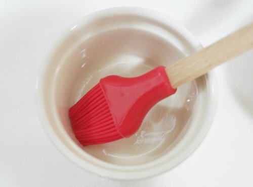5、把烤碗内部四周及底部涂抹上奶油或是沙拉油。