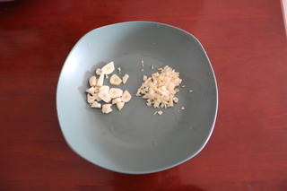大蒜若干一部分切片,一部分切末。