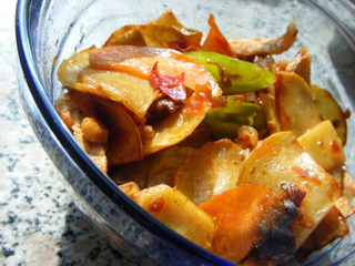“一般干锅类的菜都要过油,这个干锅土豆片,不用过油,很健康哦!”